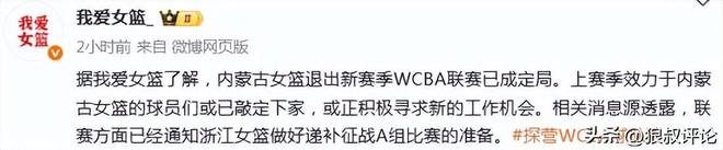 媒体人:内蒙古女篮退出新赛季WCBA已成定局,球员们或已敲定下家